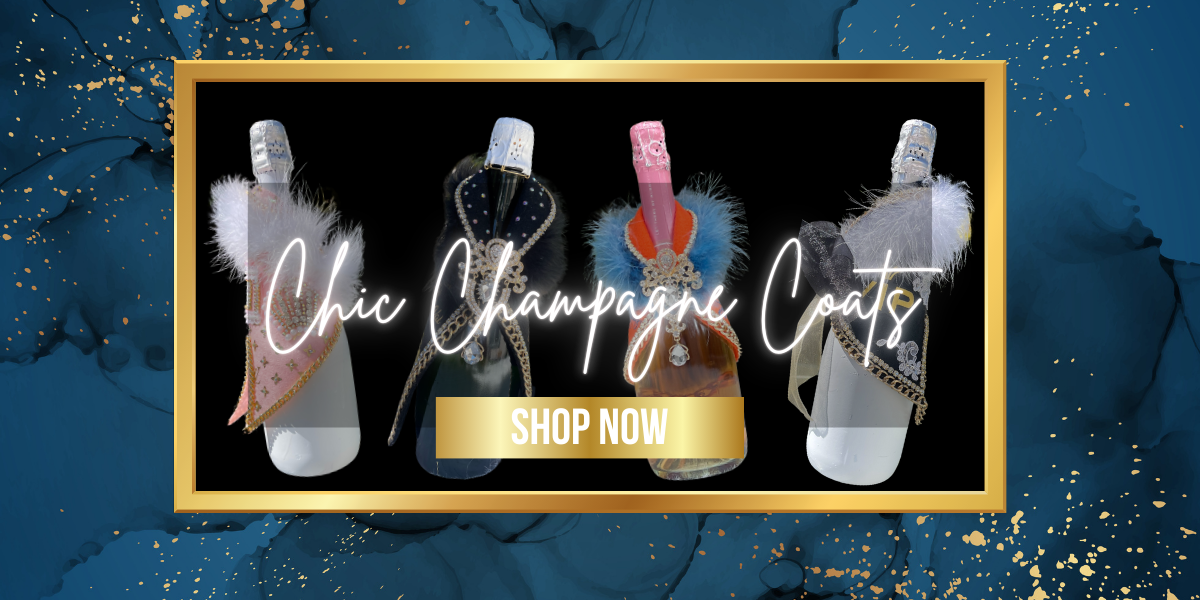 Shop Chic Champagne Coats and dress up your celebrations in our handmade, reusable (endless times) champagne coats! These fully customizable, charming fabric jackets add style to your bottles, perfect for gifting or elevating any toast. Add a splash of charm to your celebration!